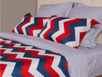 Ткань Сатин Размер постельного белья 2-спальное Размер пододеяльника 180х215 Размер простыни 220х240 Тип простыни Классическая Размер наволочек 50х70 (2шт), 70х70 (2шт) Тема Геометрия, Двухстороннее Цвет красный
